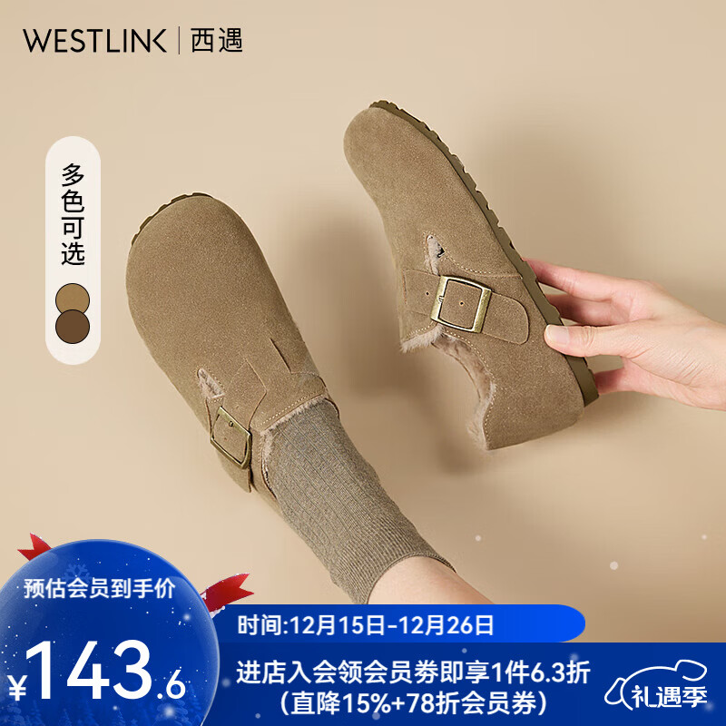 旗舰店西遇全包勃肯鞋女加绒2025冬新款软底棉鞋保暖一脚蹬毛毛鞋 卡色 (预售20天) 35 (225mm)