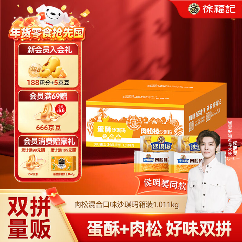 自营徐福记蛋酥酥香肉松混合口味沙琪玛 箱装1.011kg 43枚零食