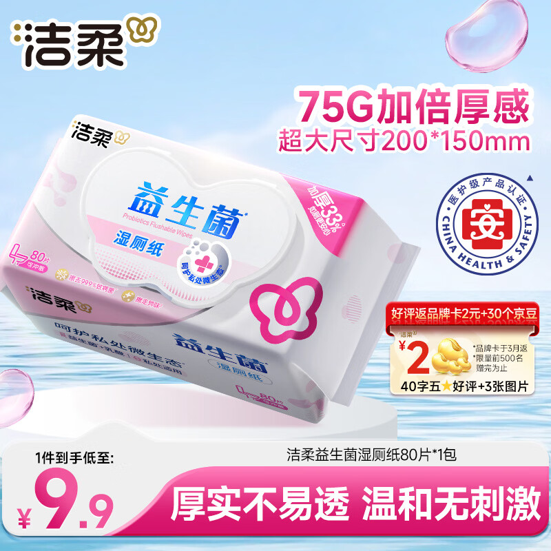 自营洁柔湿厕纸益生菌80抽加厚厕纸湿巾厕纸 湿巾呵护女性私处 校园必备