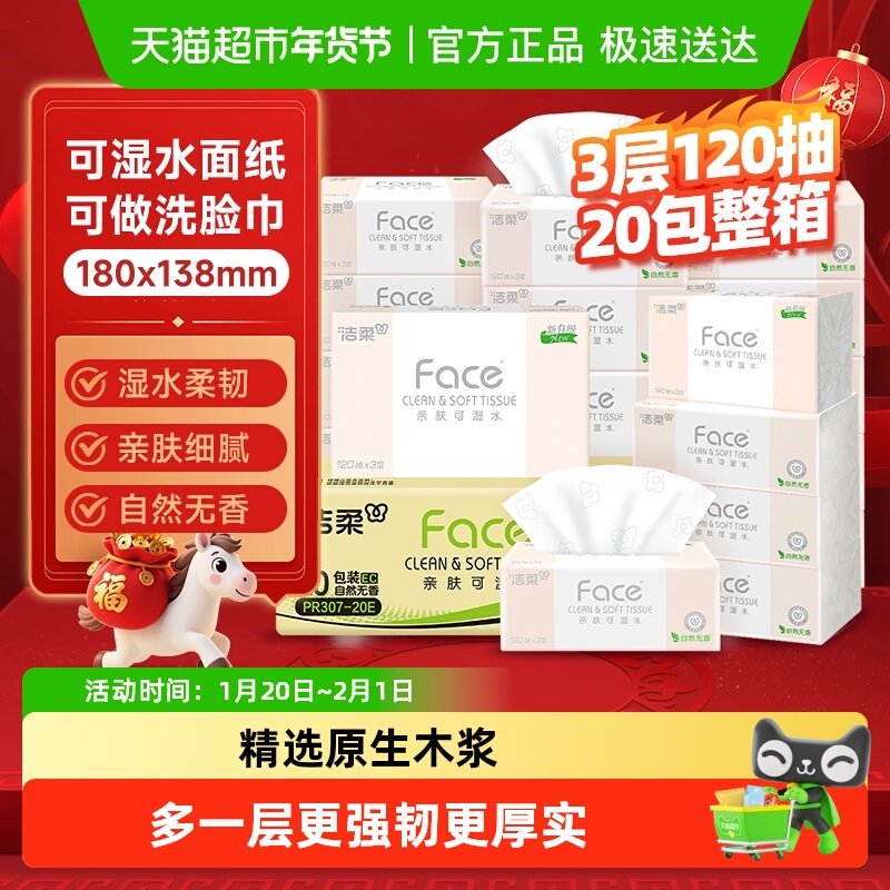 【下拉享优惠】洁柔粉Face抽纸餐巾纸多规格可湿水纸家用整箱纸巾