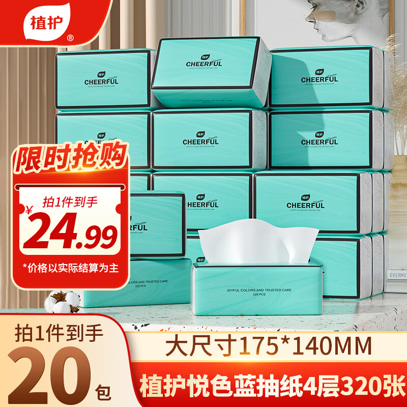 自营植护气垫抽纸4层80抽*20包纸抽整箱批发悦色蓝餐巾卫生纸面巾擦手用纸