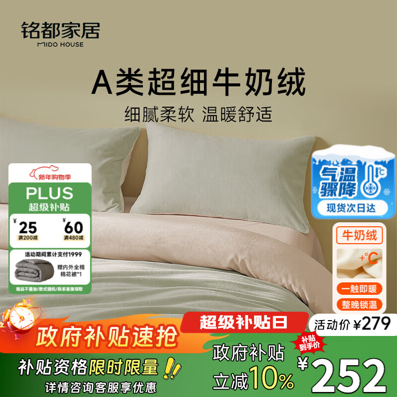 自营MIDO HOUSE铭都床上用品高端牛奶绒四件套床单被套冬季加绒毛绒四件套200X230嫩芽绿