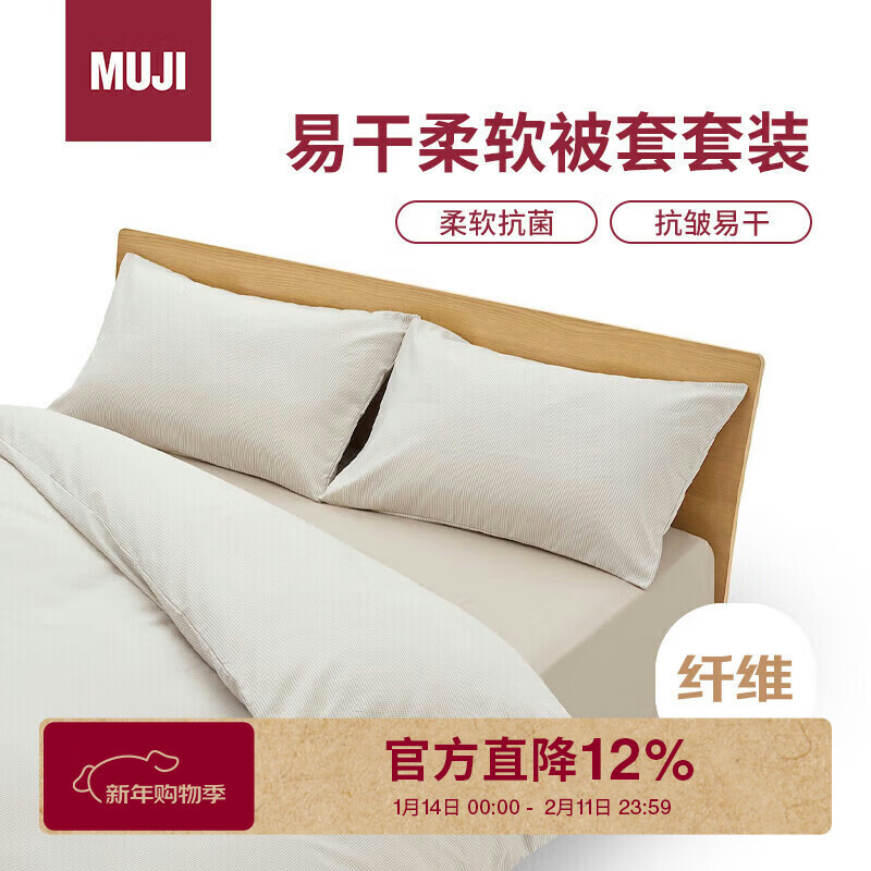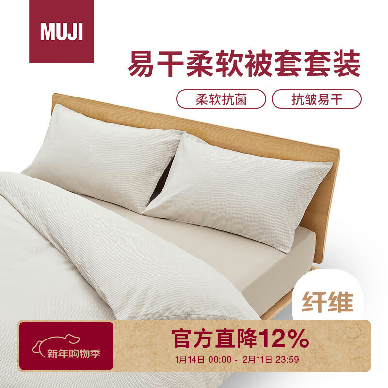 自营MUJI易干柔软被套套装 床上四件套 米色格纹 床单式/双人床用