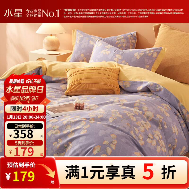 旗舰店水星家纺出品百丽丝套件 秋冬磨毛套件三/四件套居家床单被套床上用品 吟杏(全棉磨毛&不易掉毛) 1.2米床 床单款 (被套150*210cm)