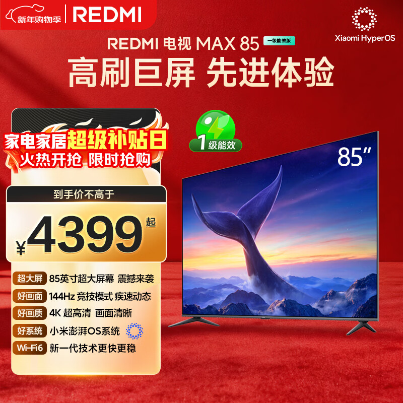 自营小米REDMI 电视 MAX85 85英寸 144Hz高刷 3GB+64GB 小米澎湃OS系统 以旧换新 L85RC-MAXE