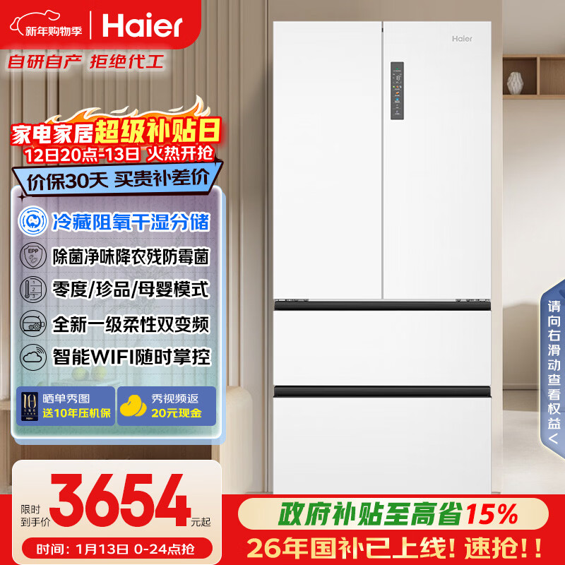 自营海尔(Haier)「家宴系列」510L法式多门母婴冰箱干湿分储EPP超净除菌净味大容量BCD-510WGHFD59WVU1国家补贴
