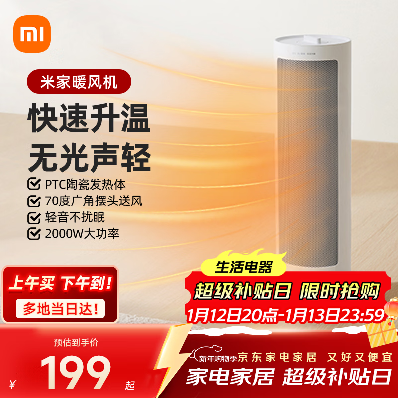 自营米家小米取暖器京东自营暖风机小太阳取暖器立式速热恒温电暖器家用小型暖风机立式电暖器LSNFJ03ZM
