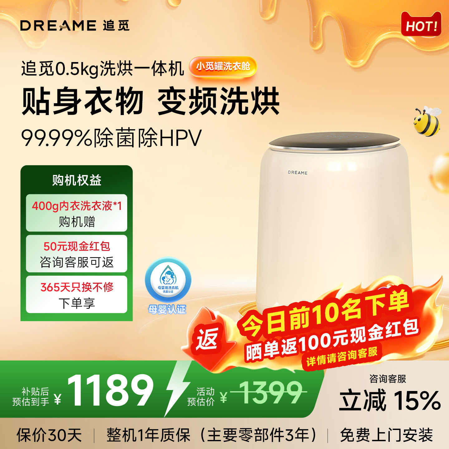 旗舰店追觅小觅罐0.5kg迷你内衣洗衣机内裤小型全自动洗烘一体以旧换新