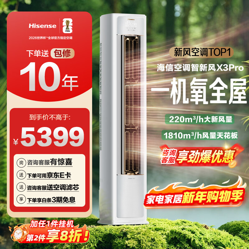 旗舰店海信(Hisense)智新风X3Pro 大3匹 220m³/h新风量 AI省电 新风5重净化 大客厅柜机新风空调 KFR-72LW/X300Pro-X1 【咨询客服享优惠】