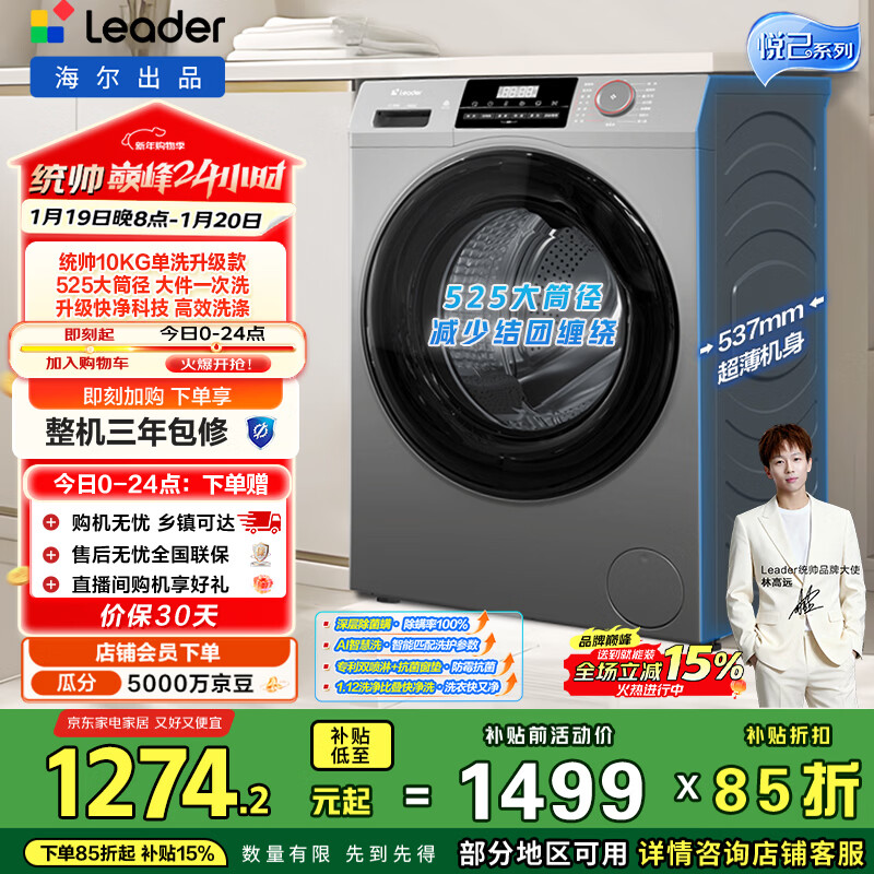 自营统帅(Leader)海尔出品 悦己滚筒洗衣机 全自动家用内衣洗 10公斤超薄 京东自营以旧换新家电补贴XQGL100-LJ526H