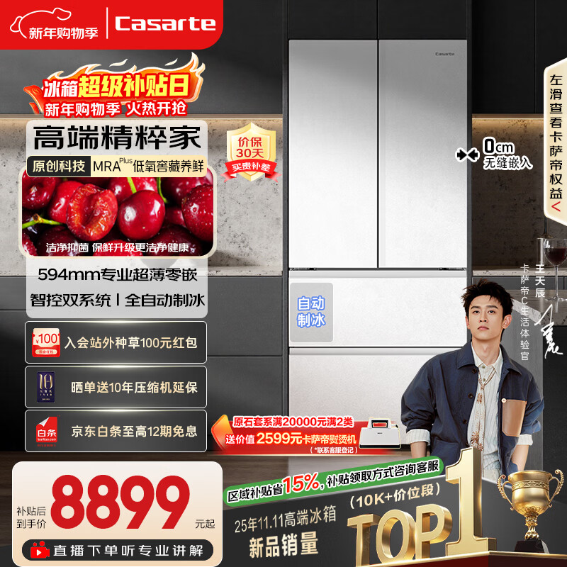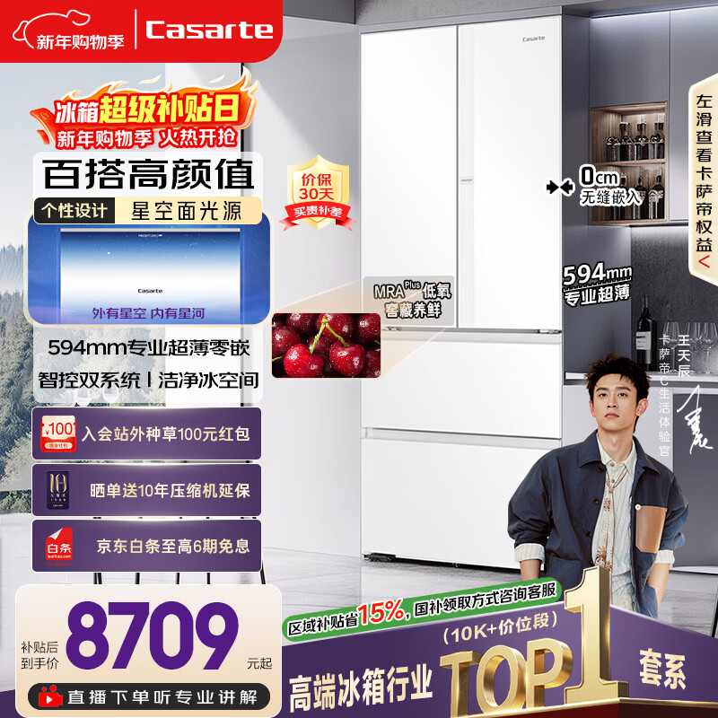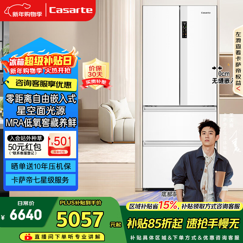 自营卡萨帝(Casarte)揽光418L法式多门冰箱零嵌入式低氧窖藏保鲜一级能效BCD-418WLCFDM4WKU1国家补贴