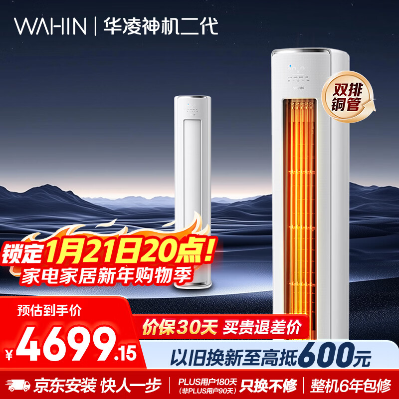自营华凌空调 神机二代3匹一级能效 双排铜管节能省电 变频冷暖客厅立式柜机 国家补贴 KFR-72LW/N8HE1Ⅱ