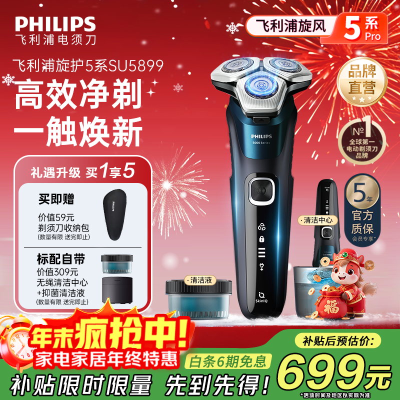 旗舰店飞利浦(PHILIPS)剃须刀电动剃须刀飞利浦经典5系Pro清爽净剃AI智能刮胡刀飞利浦电动剃须刀胡须刀送男友元旦礼物 【高端旗舰】SU5899/40