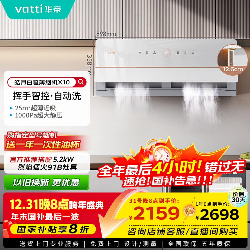 自营华帝【艺术家】国家政府补贴抽油烟机X10侧吸超薄变频白色家用脱排油烟机25风量自动洗以旧换新i11226
