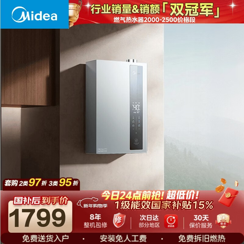 自营美的【无冷感M9S Max增压】16升 7A一级恒温全程暖 大水量 安睡一级静音 天然气燃气热水器