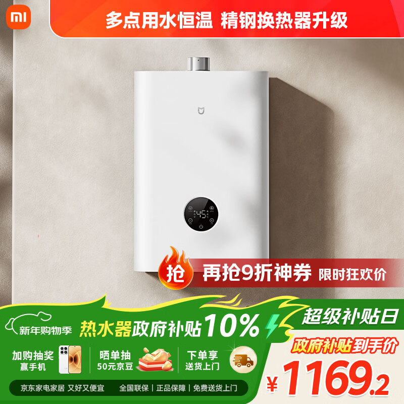 自营米家小米【双驱水伺服恒温S10】16升智能燃气家用热水器 一级静音天然气增容节能省气以旧换新MJ05