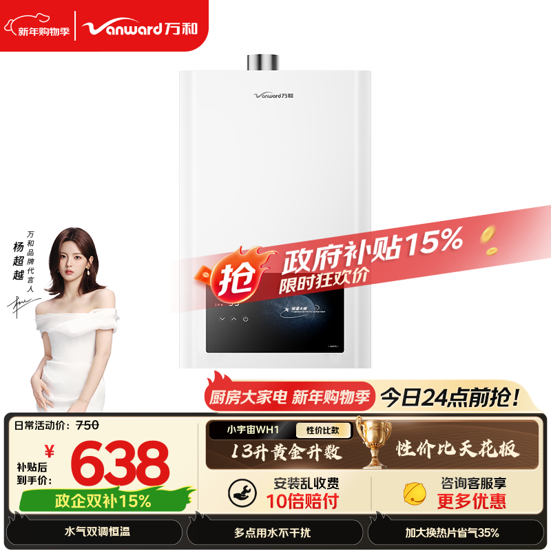 自营万和【小宇宙WH1】 13升天然气水气双调恒温家用节能省气防冻6重净精滤 上门安装 13WH1燃气热水器