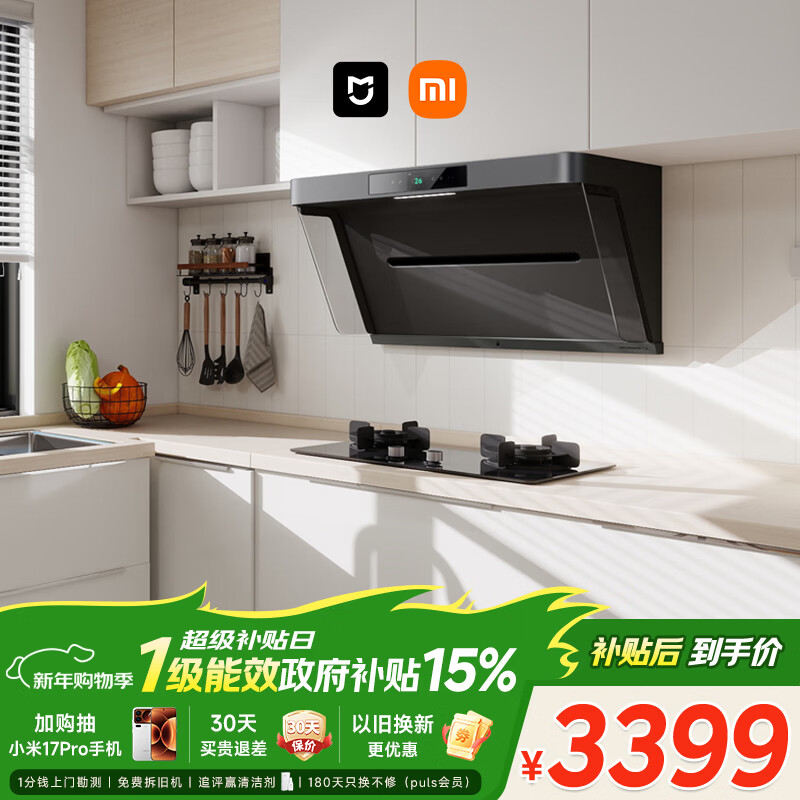 自营米家小米抽吸油烟机净烟机PRO以旧换新大吸力一级能效上门安装【天然气烟灶套装】免拆洗MJ04C