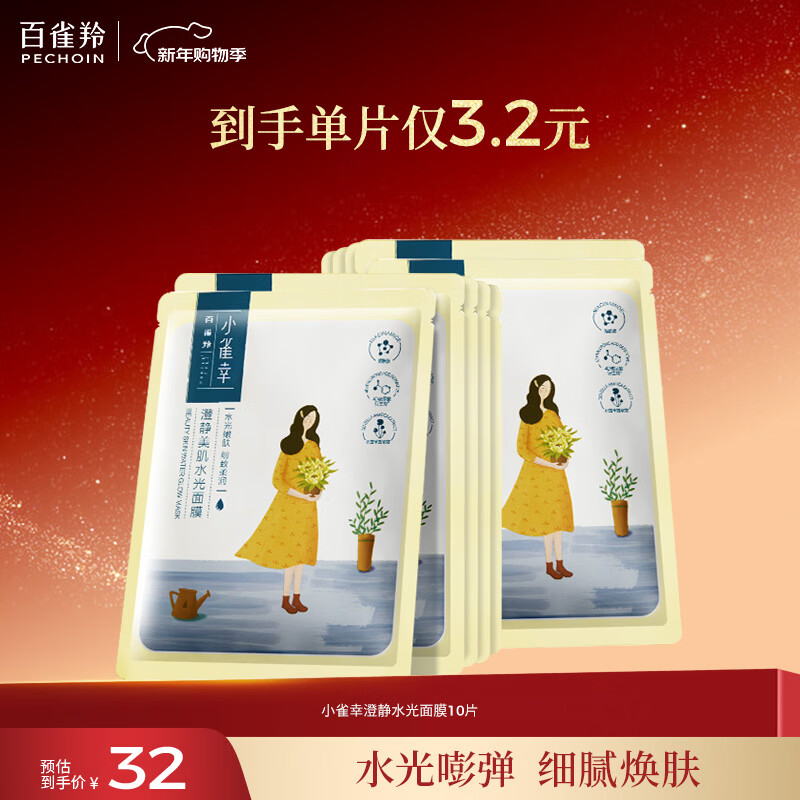 自营百雀羚面膜 小雀幸澄静水光面膜10片装补水保湿品质国货新年礼物