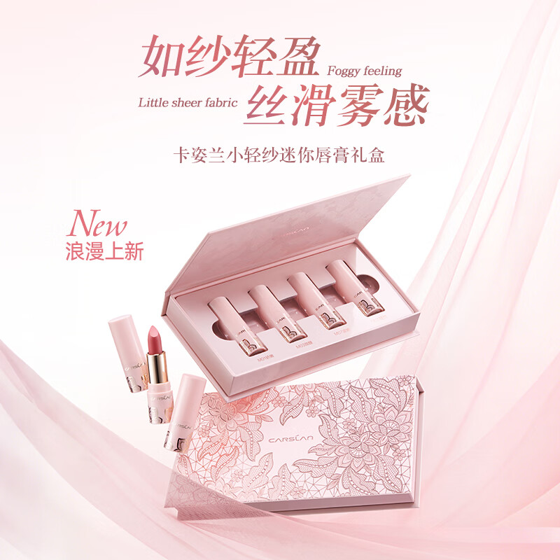 自营卡姿兰(Carslan)小轻纱迷你口红礼盒口红小支装1.2g*4 显白持久不易掉色新年礼物
