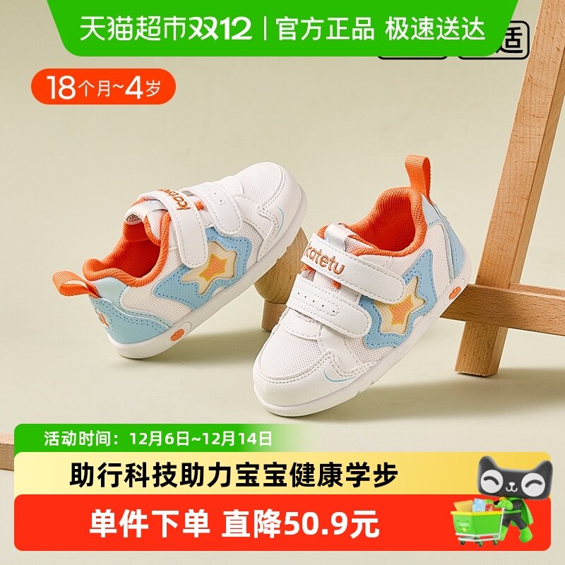 卡特兔宝宝春秋季学步鞋女童小白鞋室内鞋透气男童软底防滑机能鞋