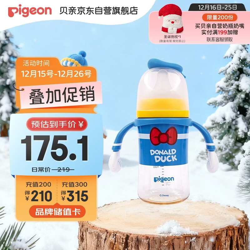 自营贝亲(Pigeon)PPSU迪士尼双把手奶瓶240ml M号奶嘴 经典唐老鸭 3月+ AA267