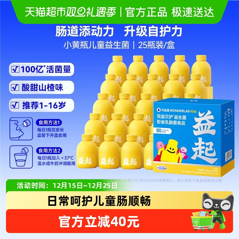 万益蓝WonderLab儿童益生菌小黄瓶100亿呵护肠胃消化乳双歧杆菌