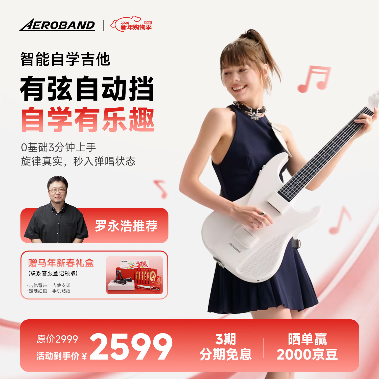 自营aeroband空气乐队智能自学吉他自动挡电子吉他初学者入门无弦吉他 星耀白
