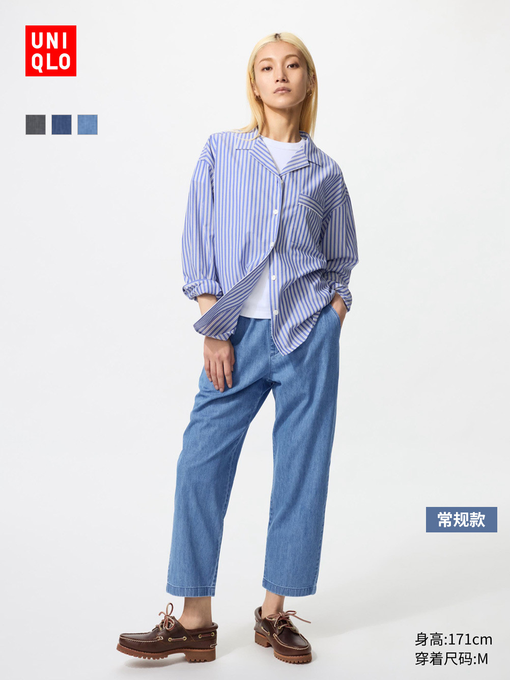 旗舰店优衣库女装棉质牛仔舒适九分裤/水洗产品休闲百搭478995 473801