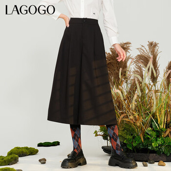 旗舰店lagogo拉谷谷2023秋冬新款高腰显瘦九分裤宽松阔腿裤女黑色休闲裤 黑色(W1) 155/S/36