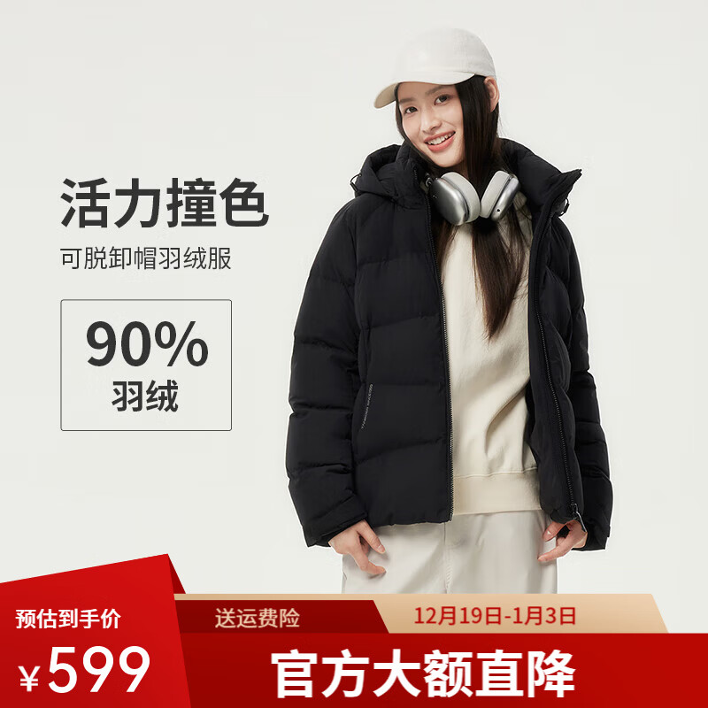 旗舰店骆驼黑钻3.0羽绒服女短款冬季加厚保暖防风连帽面包服羽绒衣外套