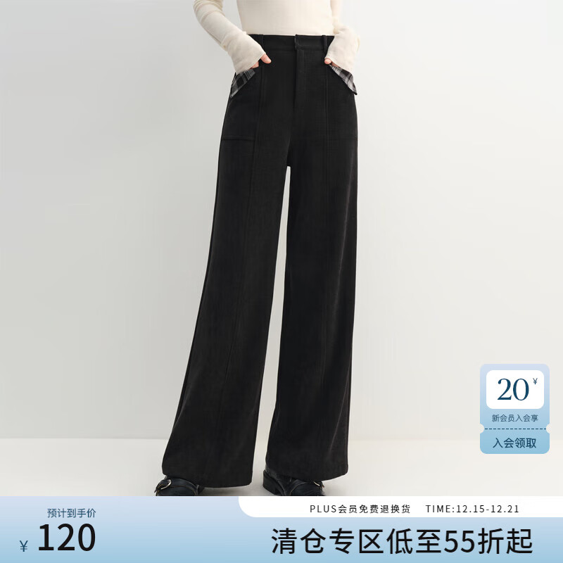 旗舰店范思蓝恩高腰灯芯绒条纹直筒裤女2025秋冬新款树莓紫裤子显瘦4353 黑色 S