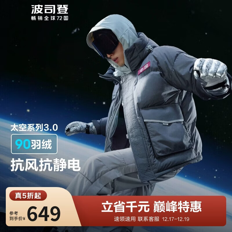 自营波司登冬季太空系列羽绒服男女情侣同款连帽加厚抗风国标90绒外套