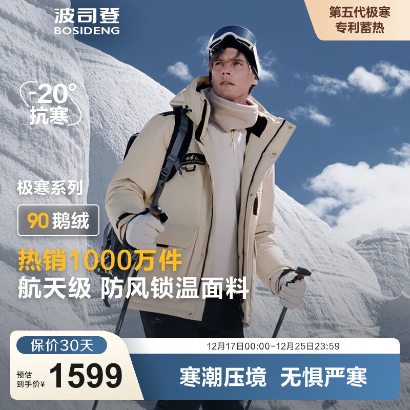 旗舰店波司登(BOSIDENG)极寒羽绒服第五代升级新国标90鹅绒男女同款机能保暖外套 【店长推荐】燕麦色7185 L 170/92A 体重约120-130斤