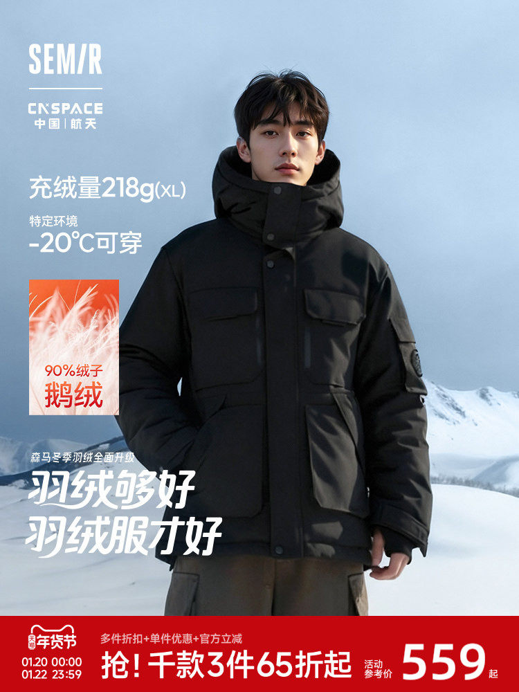 旗舰店鹅绒|森马CNSPACE航天合作工装羽绒服男冬外套25新款防风三防户外
