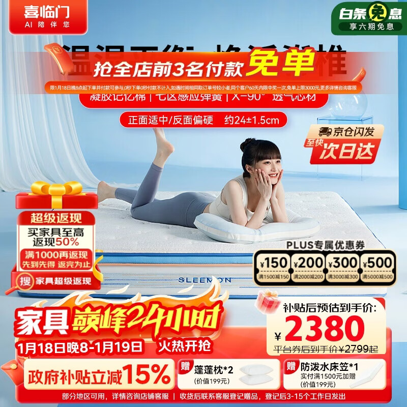 自营喜临门漾pro 羊毛棉凝胶记忆棉7区独袋弹簧3D芯材床垫 1.8x2米 软硬适中