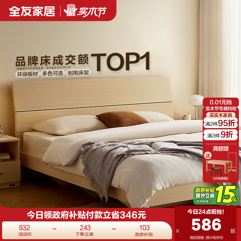 旗舰店全友家居家用1.8m双人板式床架出租房屋用1米5卧室单人床2025新款