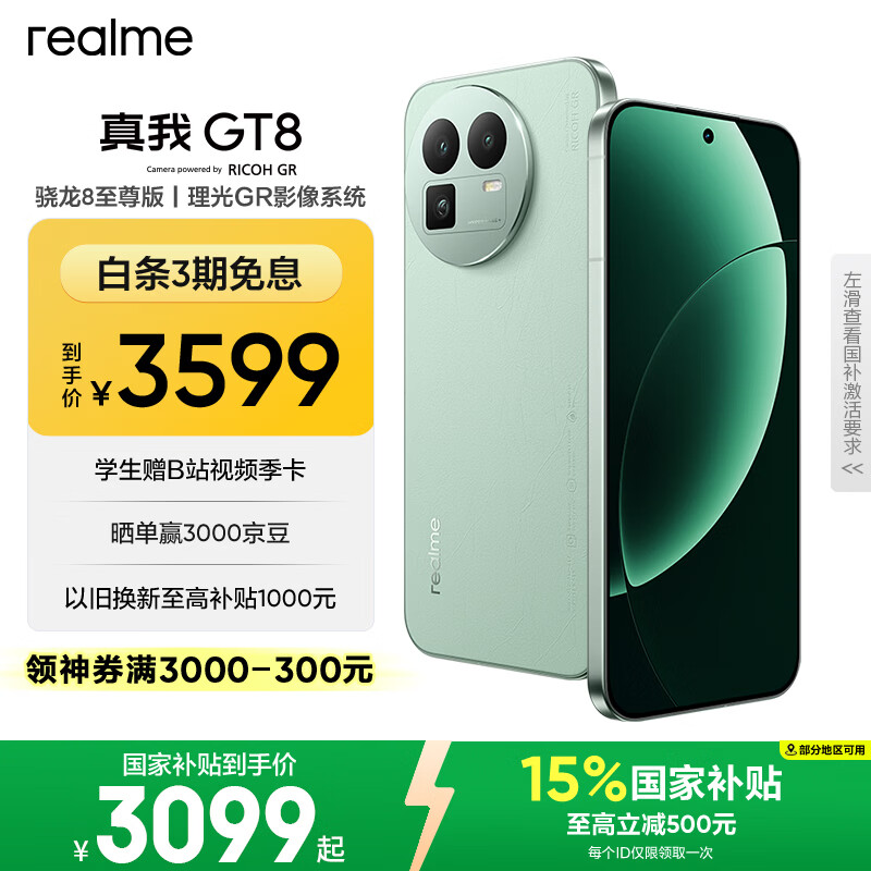 自营realme真我GT8 OPPO 骁龙8至尊版 2K 144Hz高刷直屏 5000万潜望长焦 电竞游戏学生手机 16+512绿