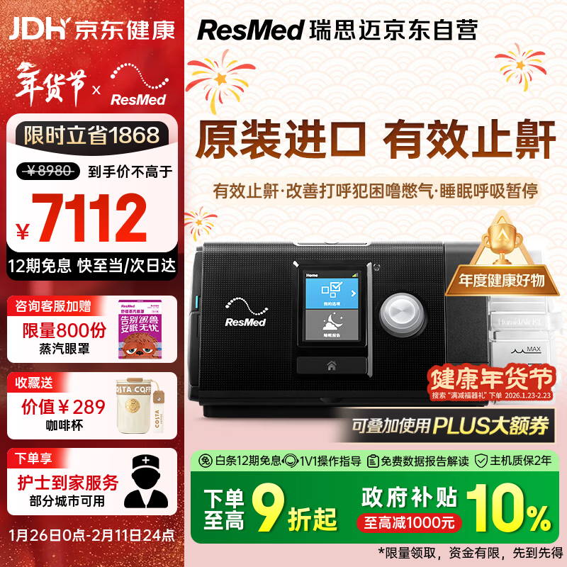 自营瑞思迈(Resmed)S10呼吸机打呼噜家用医用便携止鼾器防睡眠呼吸暂停综合症