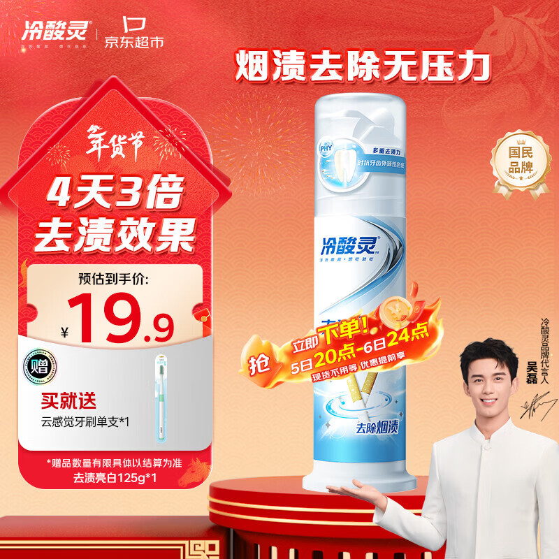 自营冷酸灵去渍亮白抗敏感泵式牙膏留兰薄荷味125g【吴磊推荐】