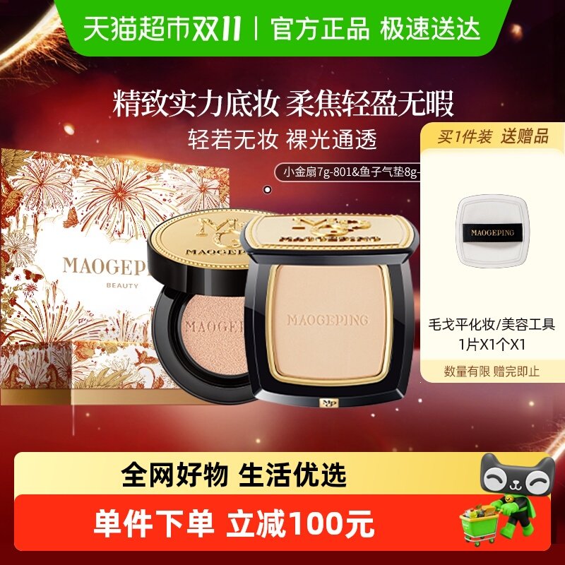【下拉享优惠】毛戈平烟花礼盒装小金扇粉饼散粉鱼子气垫防晒粉底