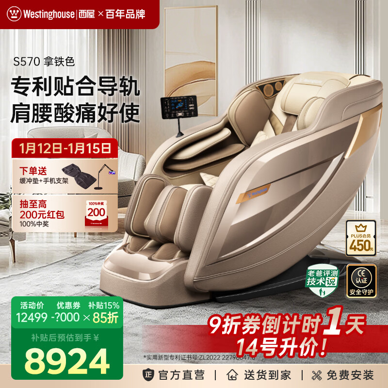 旗舰店西屋(Westinghouse)【CE认证】 S570家用智能电动按摩椅全身按摩器肩颈腰背揉捏全自动太空舱沙发2025十大按摩椅品牌 拿铁色【新色上市,百搭家居】