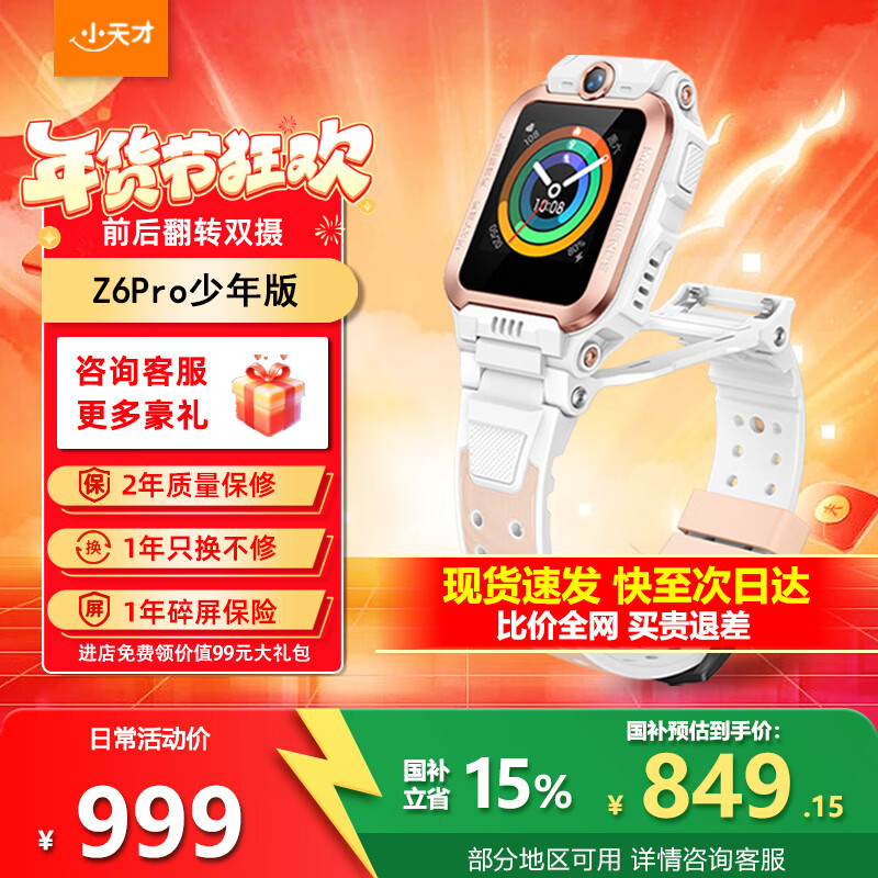 旗舰店小天才电话手表Z6Pro少年版青春系统智能儿童手表视频通话防水楼层定位6-12岁小学生安全监控小天才z6pro 【晒单领京豆】Z6Pro少年版茶金白 官方标配
