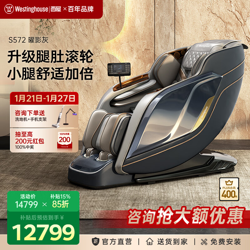旗舰店西屋(Westinghouse)S572国家补贴家用按摩椅全身太空舱全自动揉捏肩颈腰背2025十大品牌智能电动沙发S570升级款送老人 曜影灰【三区热敷 操控更省心】