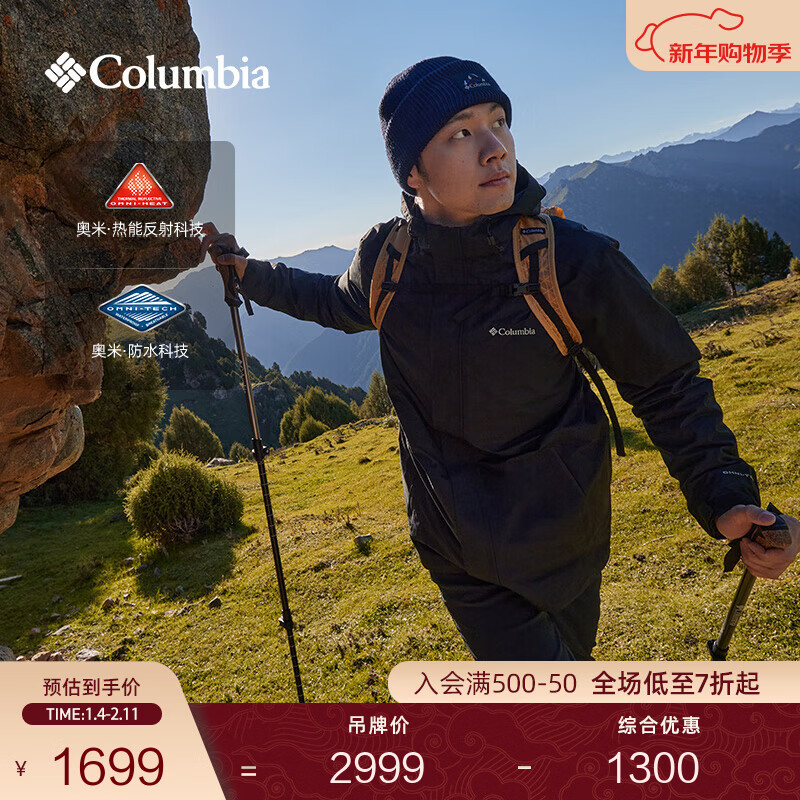 旗舰店Columbia蒋奇明同款哥伦比亚男女银点700蓬鸭绒三合一防水冲锋衣XE5418 010 黑色 L(180/100A)