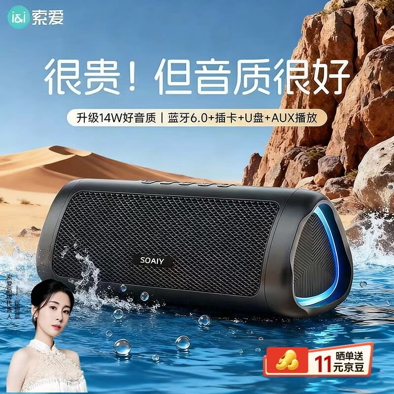 自营索爱(soaiy)S36蓝牙音箱小音响低音炮家用车载迷你电脑便携式防水收款TF卡户外防水播放器礼物 黑色