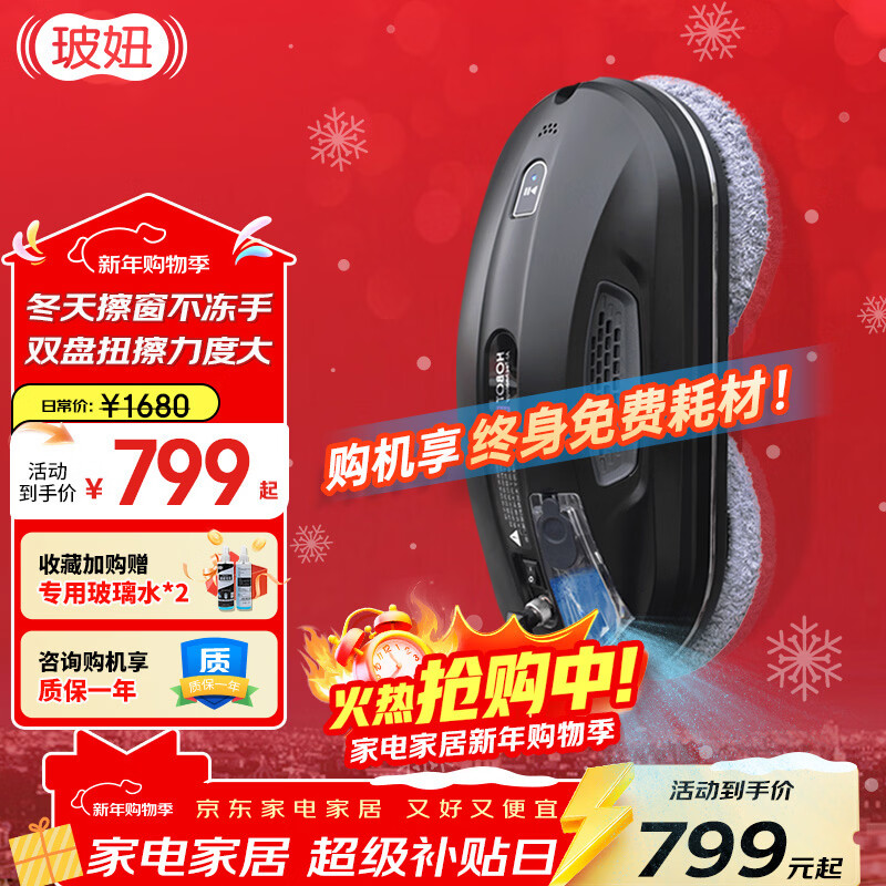 旗舰店玻妞(HOBOT)全自动家用喷水擦窗机器人波妞擦玻璃机器人 干湿两用擦玻璃窗神器 玻妞388