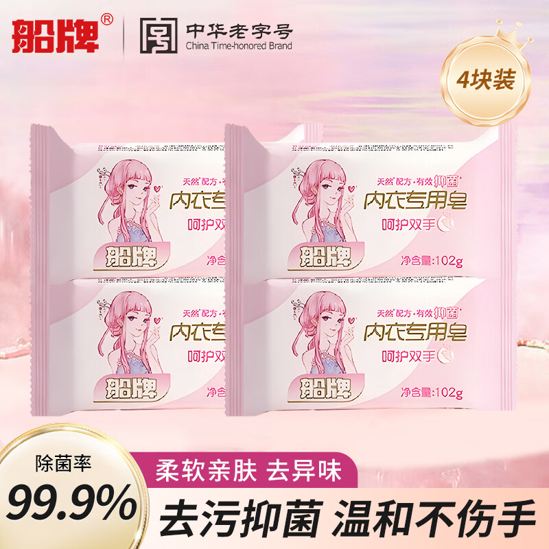 自营船牌洗衣皂102g*4内衣裤洗衣液抑菌去血渍专用肥皂婴幼儿衣物可用