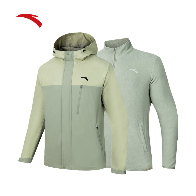 自营安踏三合一防泼水外套丨防风防暴雨拼色可拆卸硬壳户外男风衣