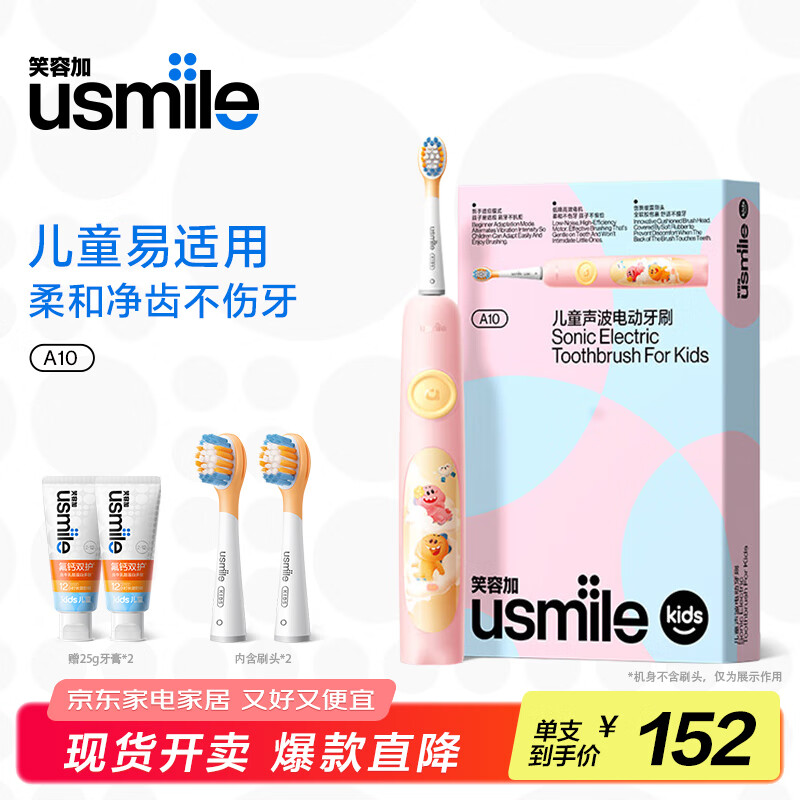旗舰店usmile笑容加 儿童电动牙刷 A10 牙医推荐声波震动 儿童礼物 小恐龙刷(适用3-6-12岁儿童)生日礼物 A10灵柔粉